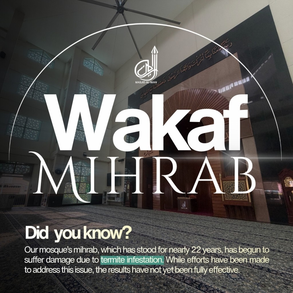 Our mosque’s mihrab, which has stood for nearly 22 years, has begun to suffer damage due to termite infestation. While efforts have been made to address this issue, the results have not yet been fully effective.